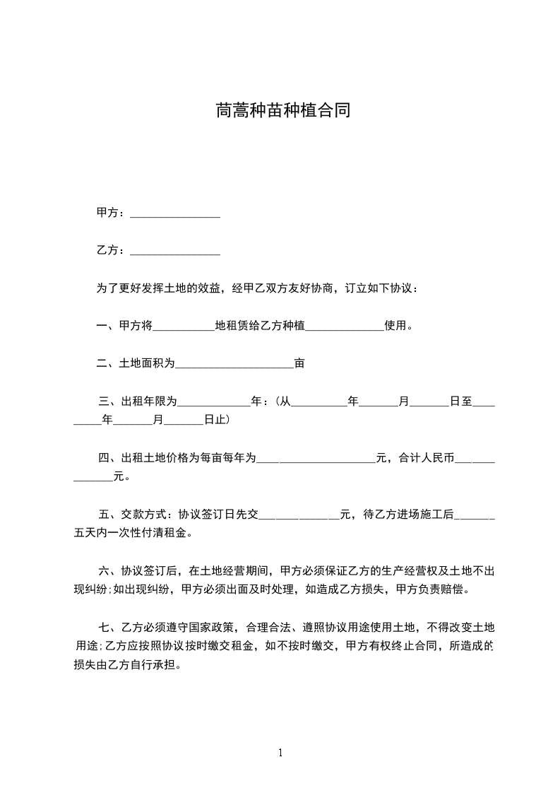 八、在土地租赁期间,如遇国家征用或甲方整体土地开发利用,乙方必须同意,土地赔偿款归甲方,青苗费归乙方,乙方所交租金扣除使用年限后剩余部分退还乙方。