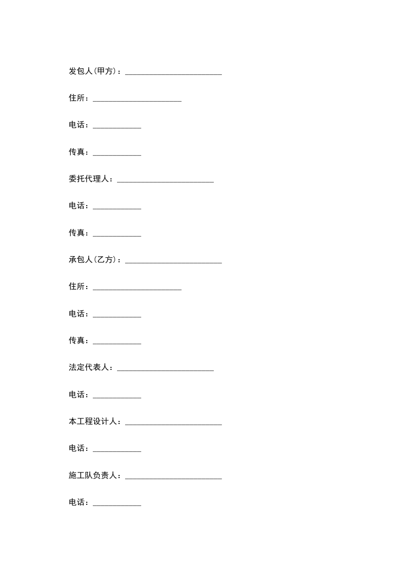甲方将_______________________工程发包给乙方施工,为了明确双方责任、保证施工顺利进行,经双方充分协商,特签订本合同,双方共同遵守执行。