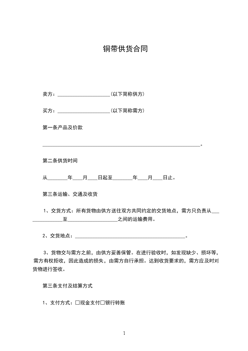八、需方未按时付款,而使交货期延迟,责任由需方承担。
