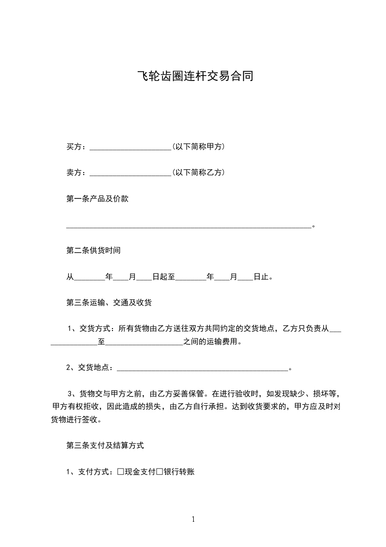 1、交货方式:所有货物由乙方送往双方共同约定的交货地点,乙方只负责从_______________至____________________之间的运输费用。