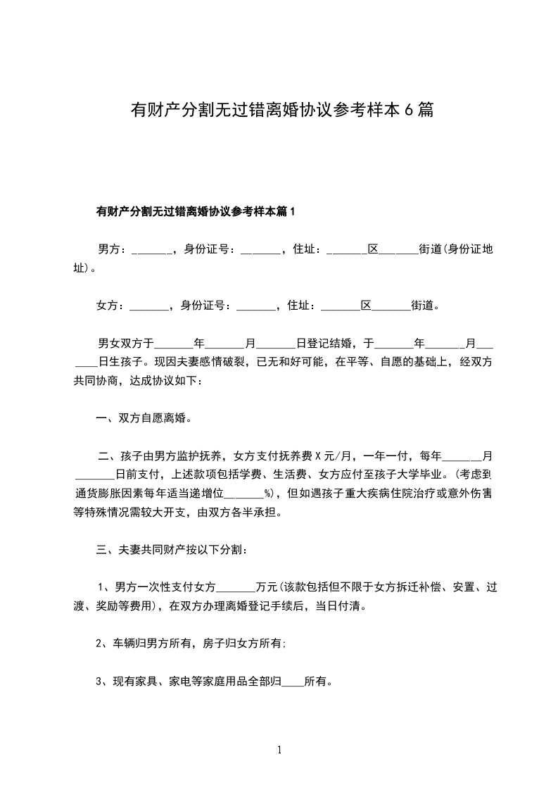 1.存款:双方名下现有银行存款共元,双方各分一半,为元。分配方式:各自名下的存款保持不变,但男方/女方应于年月日前一次性支付元给女方/男方。