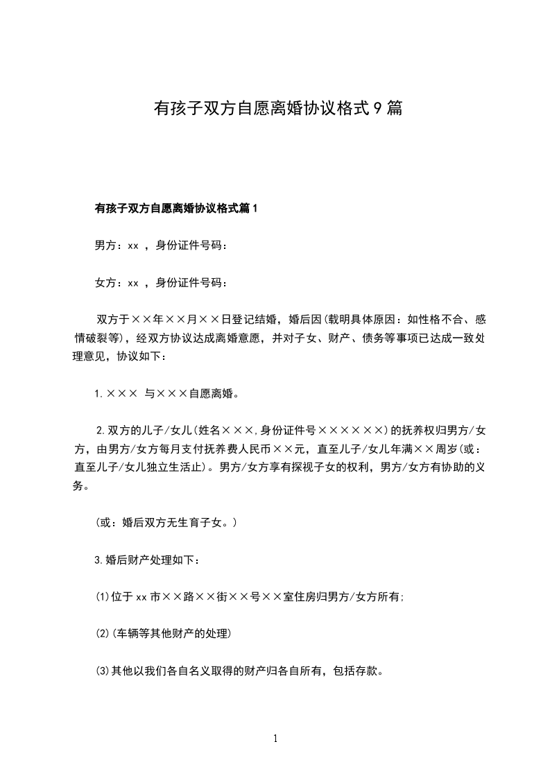 有孩子双方自愿协议离婚书参考样本篇9