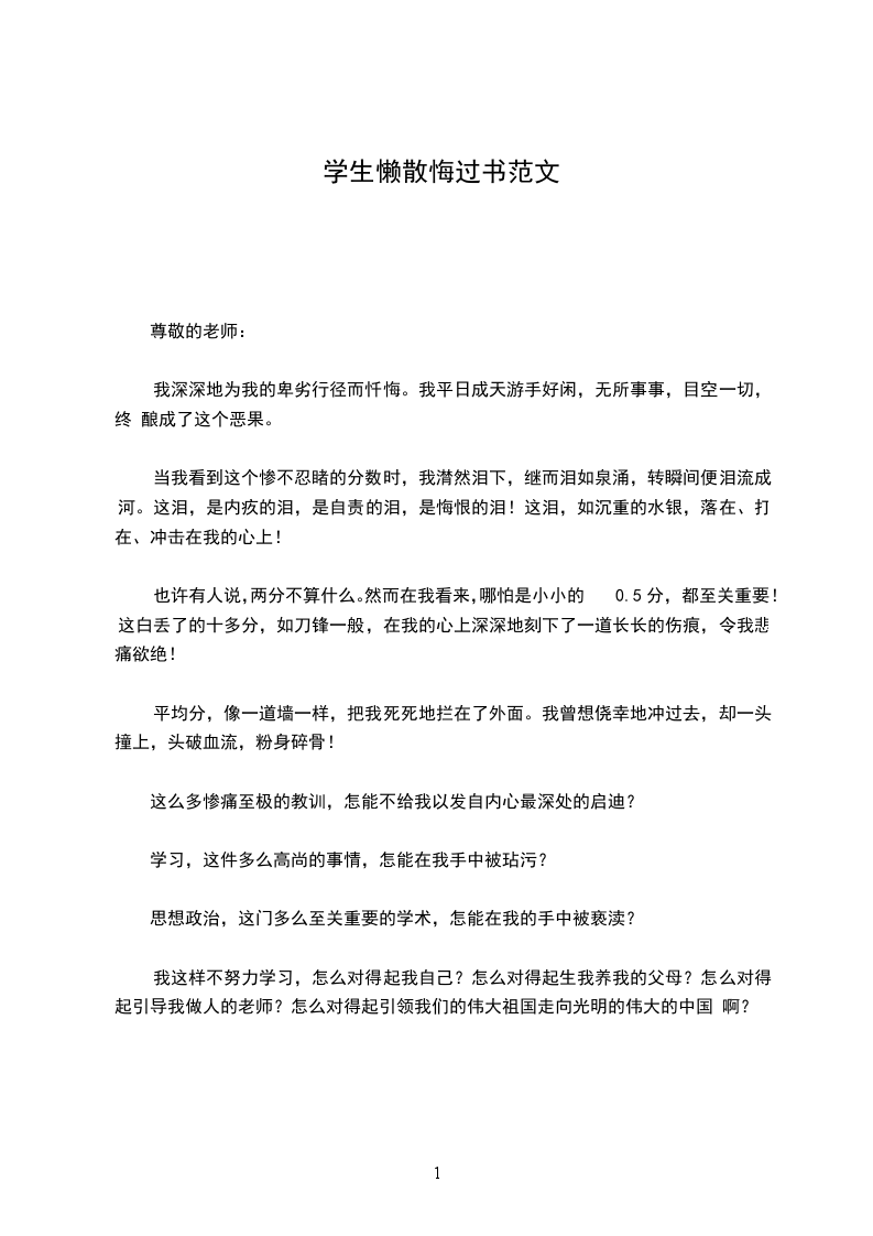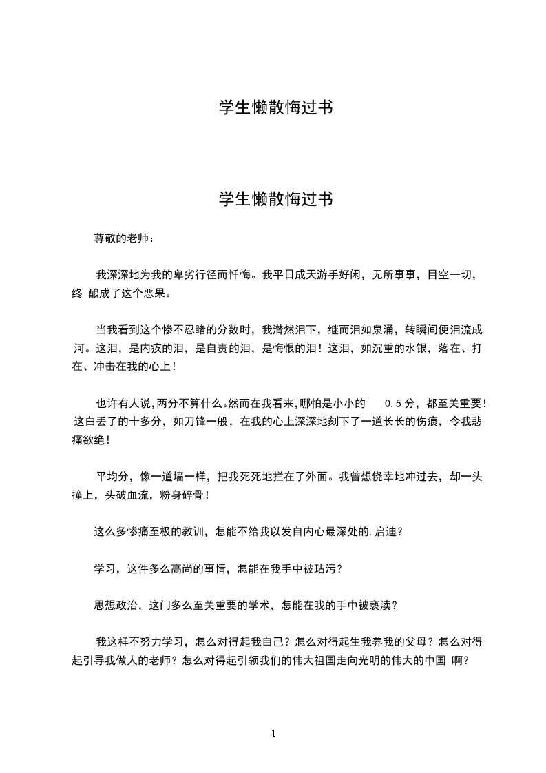 学生懒散悔过书