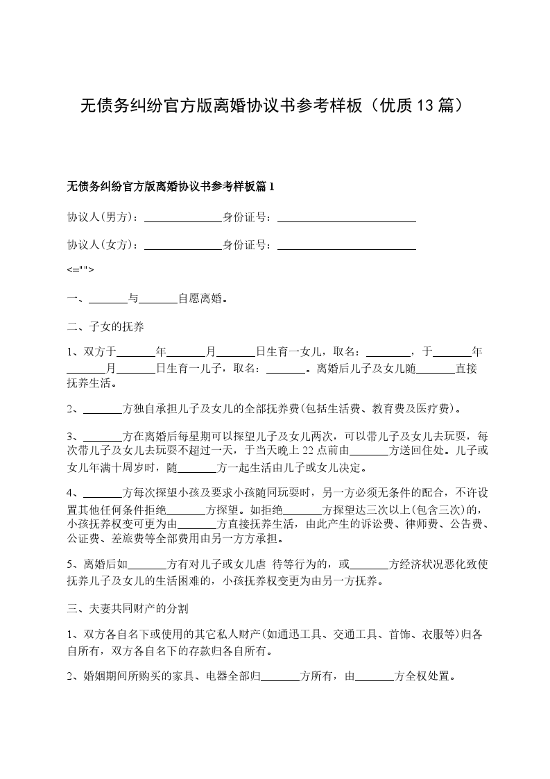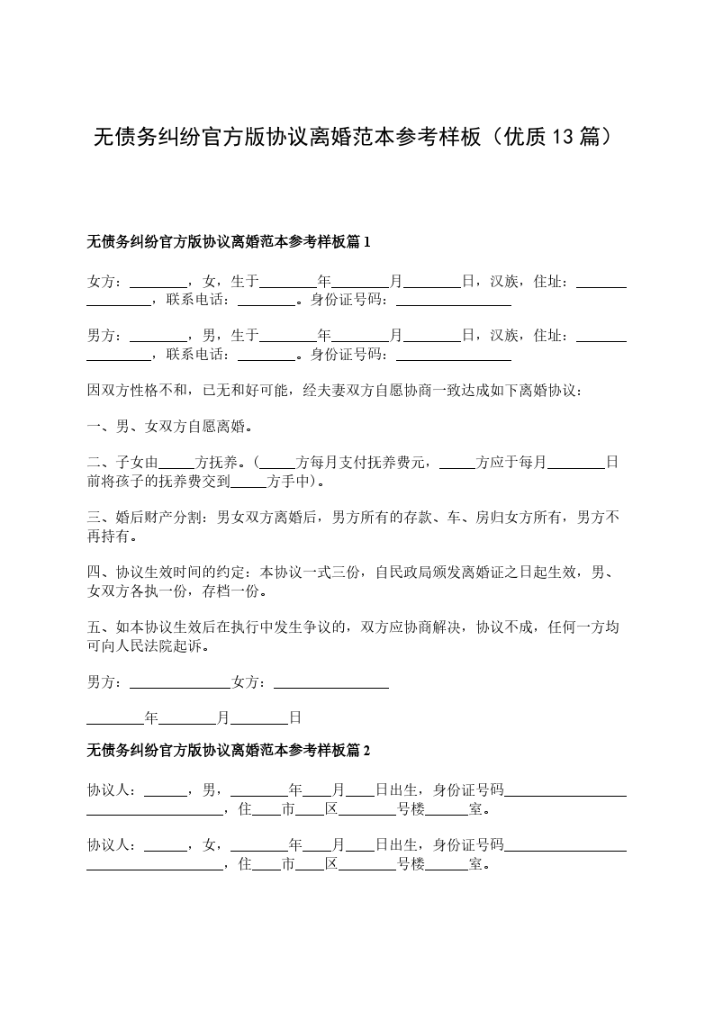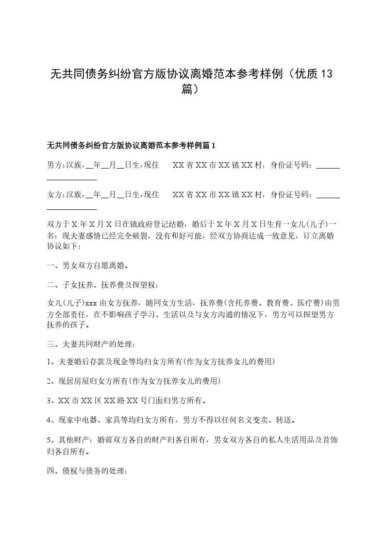 1、甲乙双方确认在婚姻关系存续期间无共同债务;