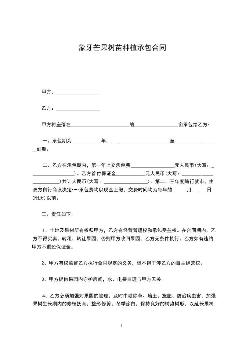 6、在承包期间,乙方应加强守护,有专人看守,防止人畜糟蹋果园。
