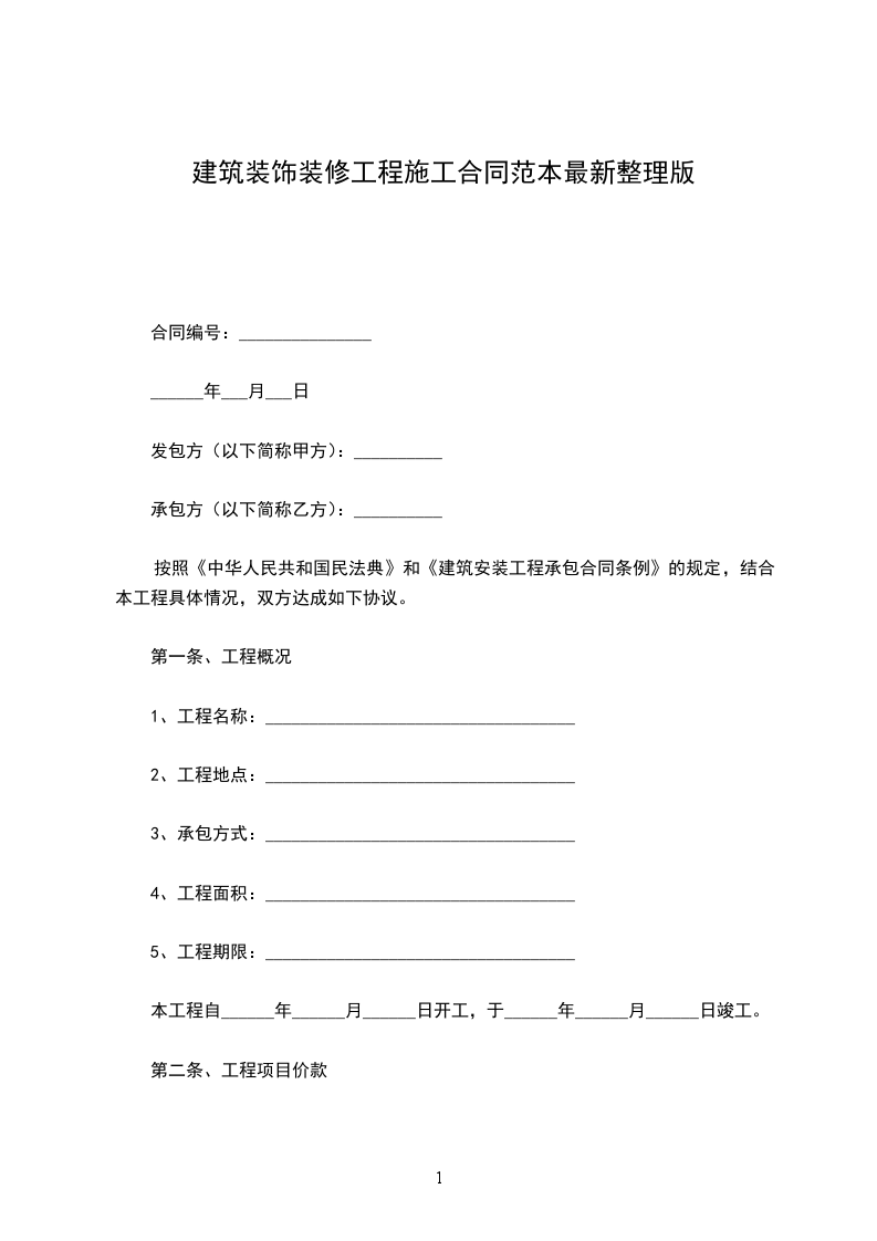 按照《中华人民共和国民法典》和《建筑安装工程承包合同条例》的规定,结合本工程具体情况,双方达成如下协议。