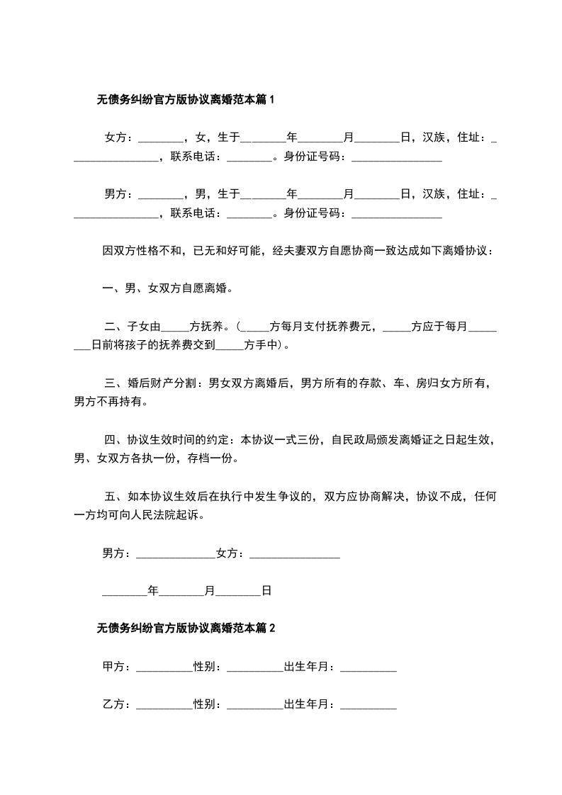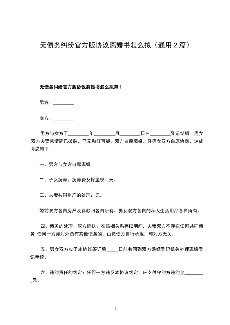 无债务纠纷官方版离婚协议书怎么拟篇2