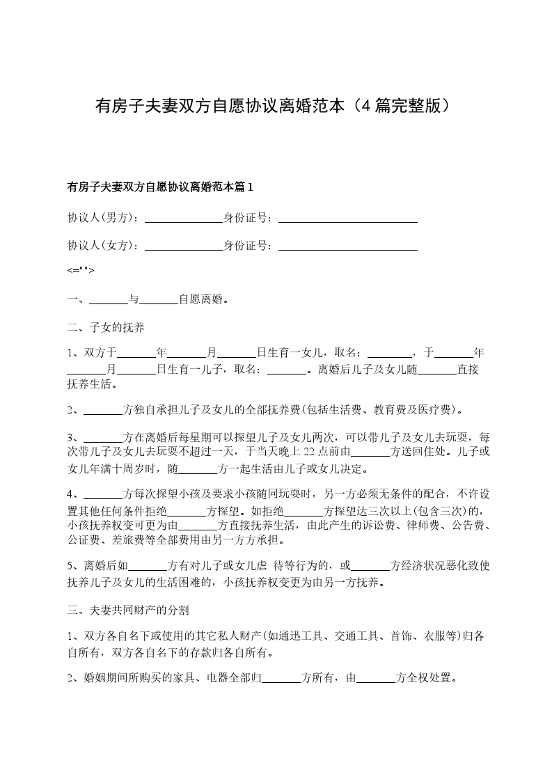 有房子夫妻双方自愿协议离婚范本篇4