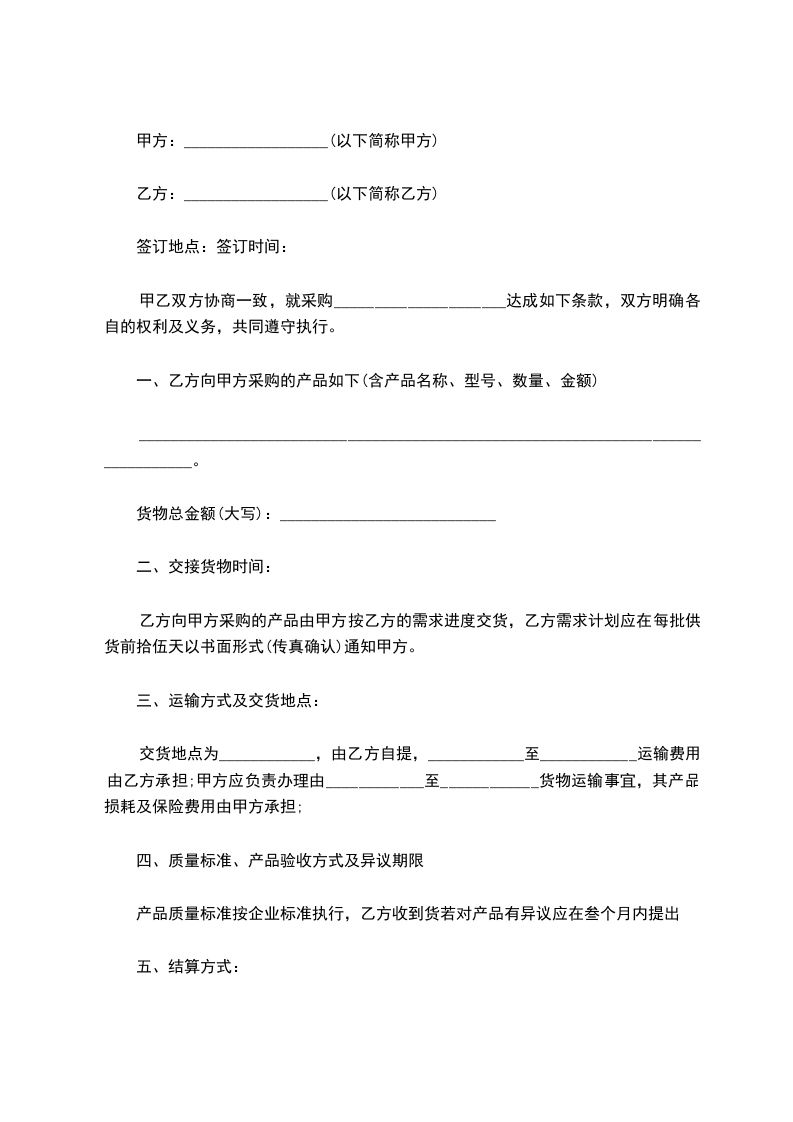 1、乙方自______年______月______日起至______年______月______日止向甲方采购货品。