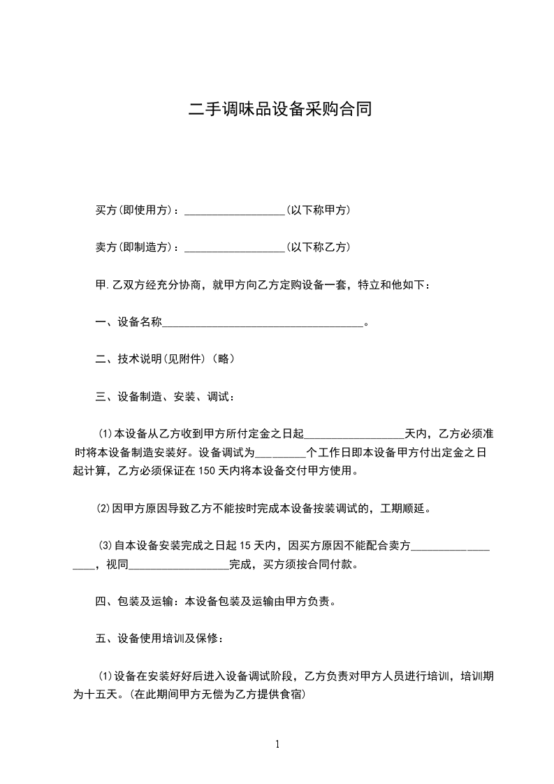二手调味品设备采购合同