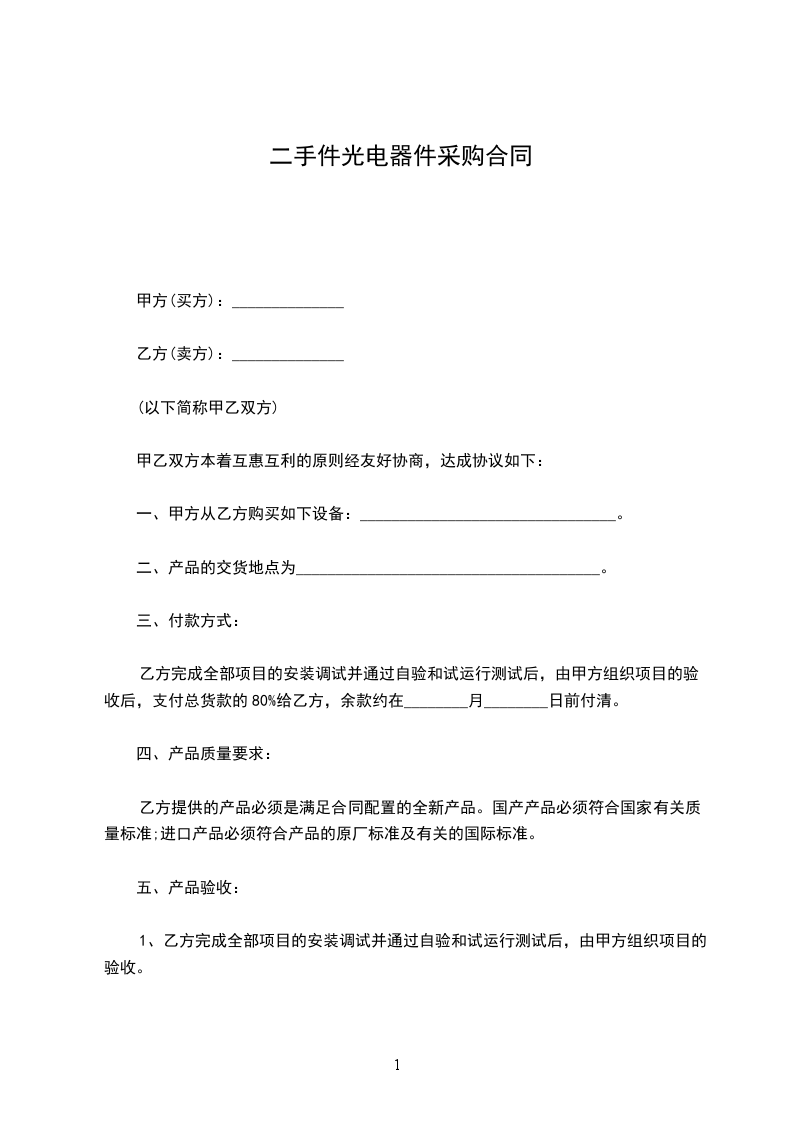 一、甲方从乙方购买如下设备:________________________________。