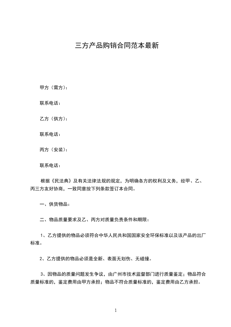 根据《民法典》及有关法律法规的规定,为明确各方的权利及义务,经甲、乙、丙三方友好协商,一致同意按下列条款签订本合同。