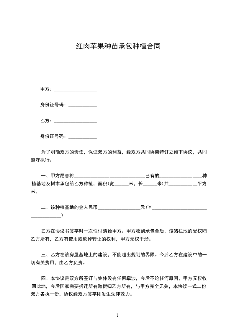 一、甲方愿意将______________________________己有的__________________种植基地及树木承包给乙方种植,面积(宽______米,长______米)共____________平方米。