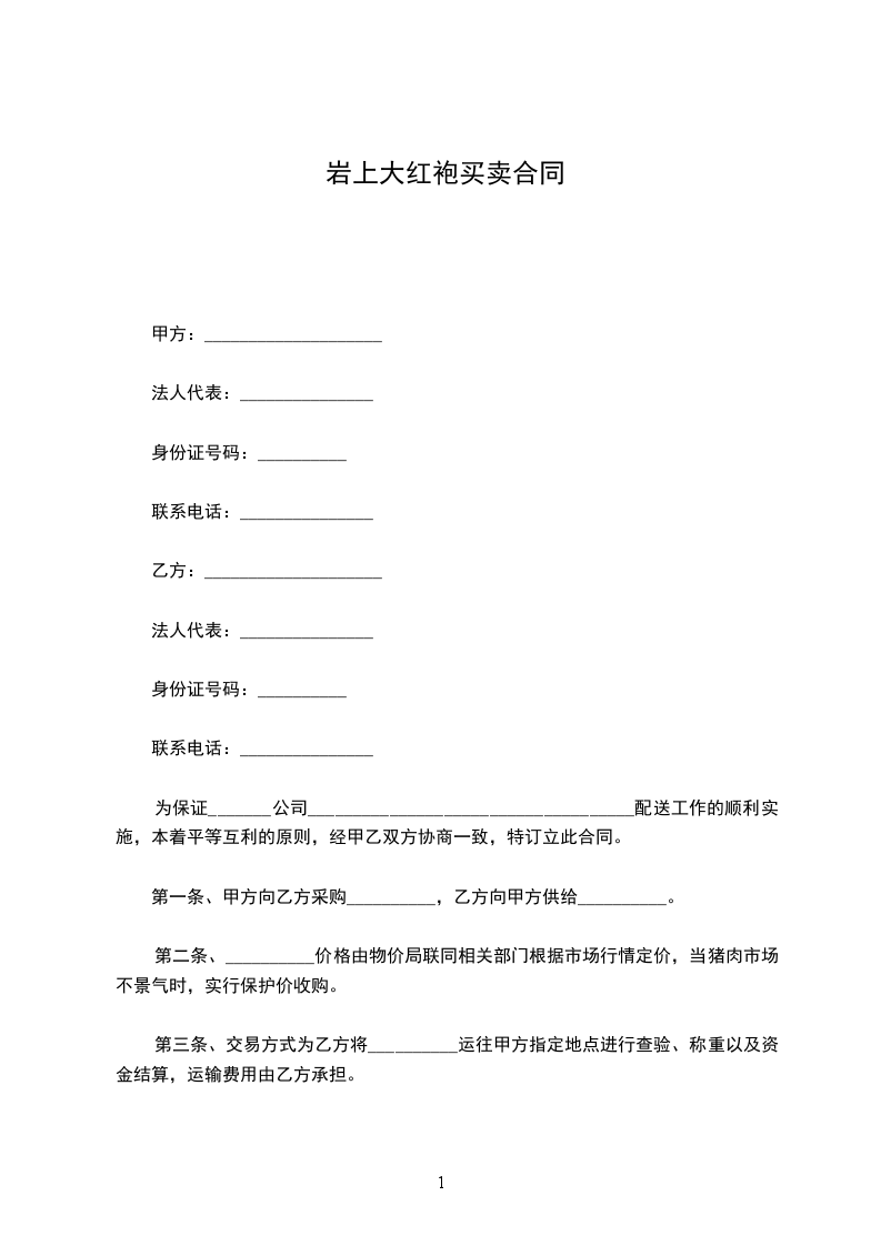 岩香大红袍买卖合同