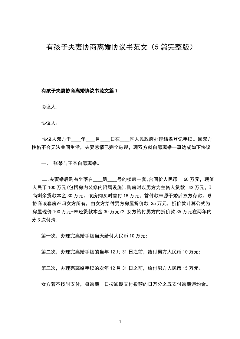 2、【房产】双方有夫妻共同财产座落在××路××小区××室商品房一套,价值人民币×××××万元,现协商归男方/女方所有,由男方/女方一次性给付男方/女方现金×××××万元,此款在本协议签订后的××天内付清;此房内的家用电器及家俱归男方/女方所有。