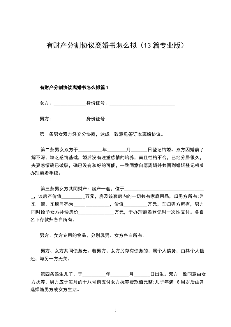 有财产分割协议离婚书怎么拟篇13