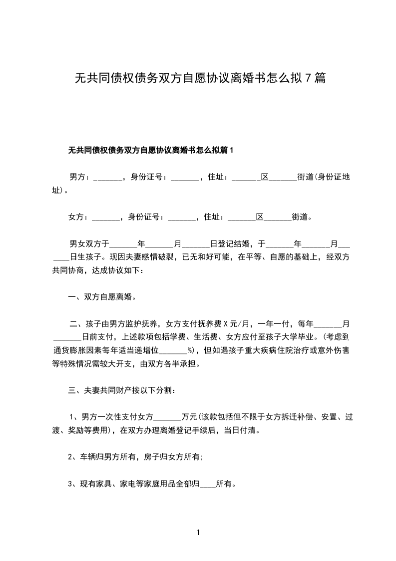 无共同债权债务双方自愿协议离婚书怎么拟篇5