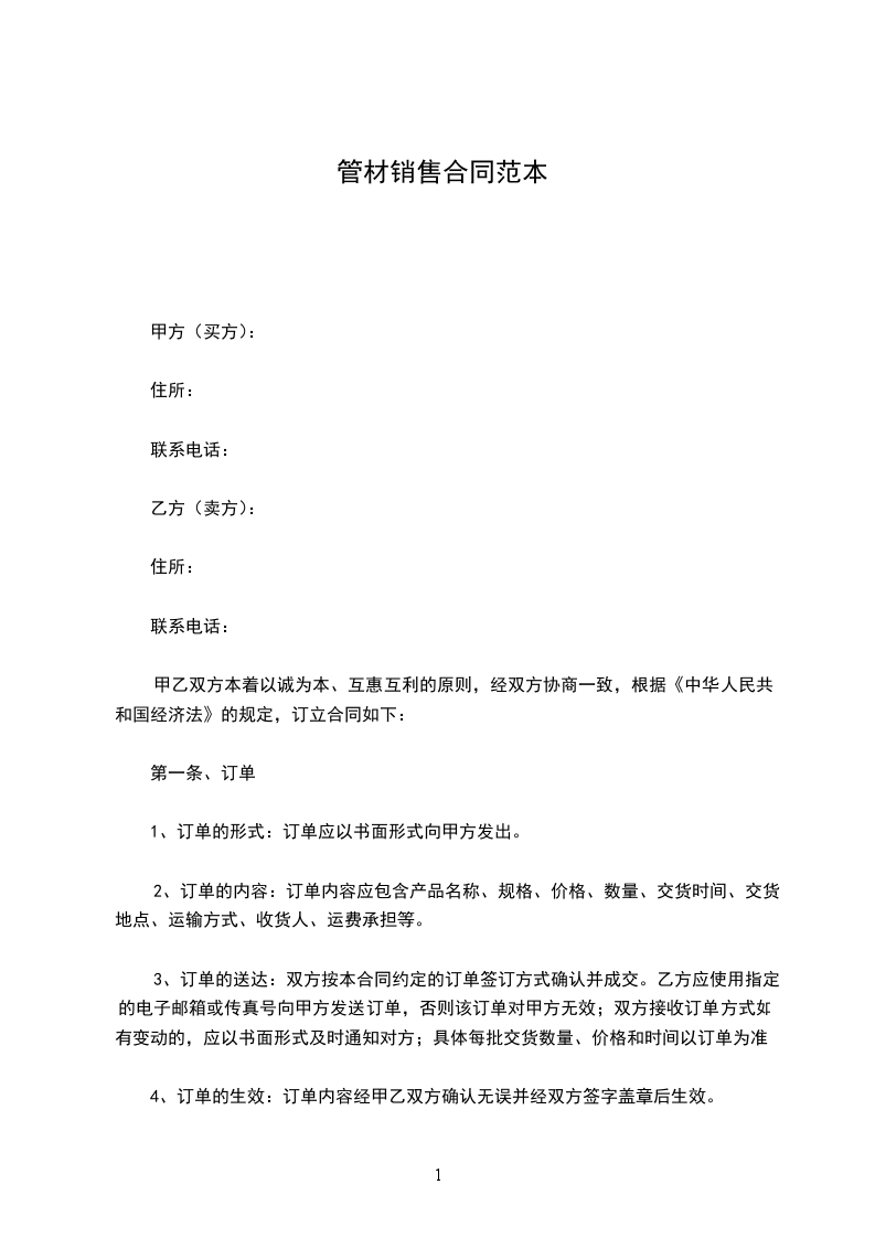 1、订单的形式:订单应以书面形式向甲方发出。
