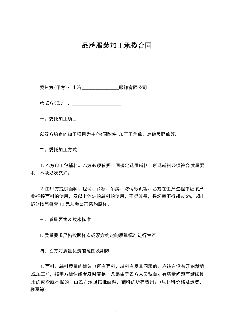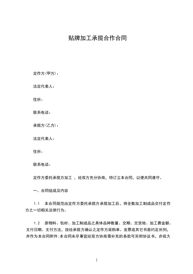1.1 本合同规范由定做方委托承揽方承揽加工后,将全数加工制成品交付定做方之一切相关法律行为。