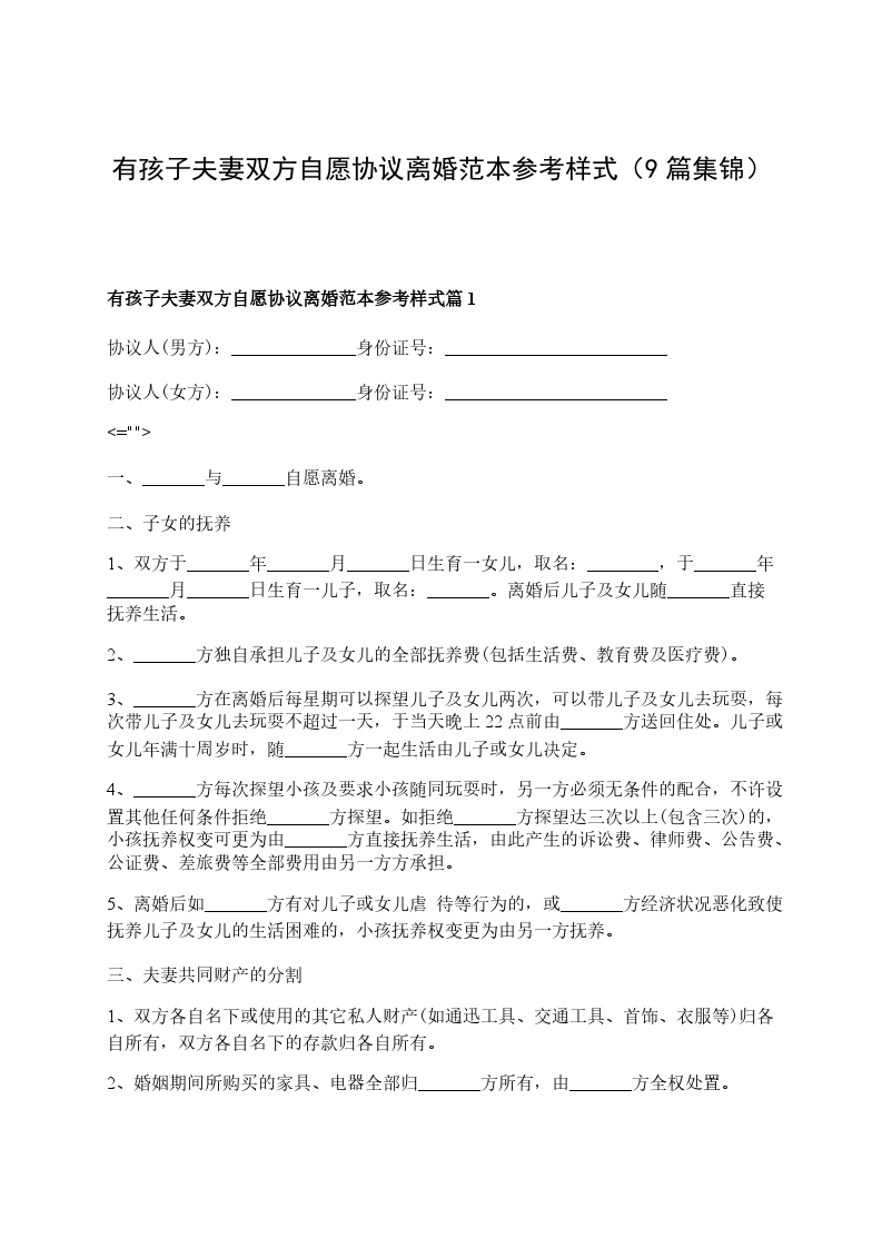 有孩子夫妻自愿协议离婚范本参考格式篇9