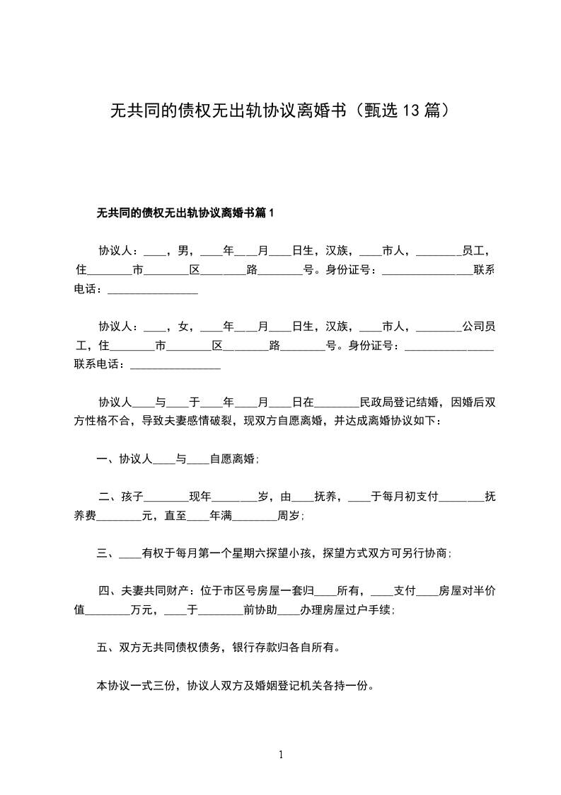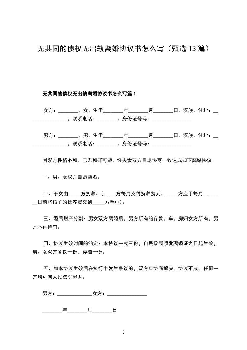 一、________与________自愿离婚,今后各自婚姻互不干涉。