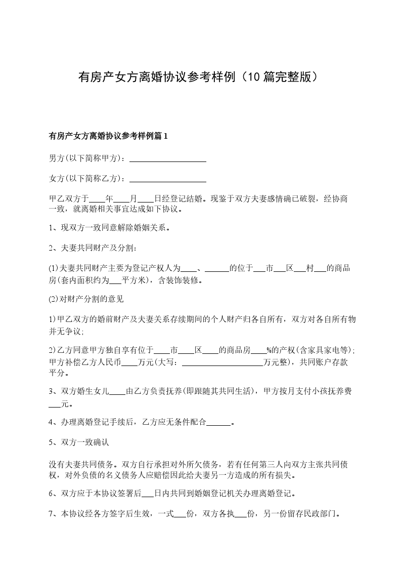 甲方:(女方):______________ ,女,汉族,生于______年__月__日,住________________________________