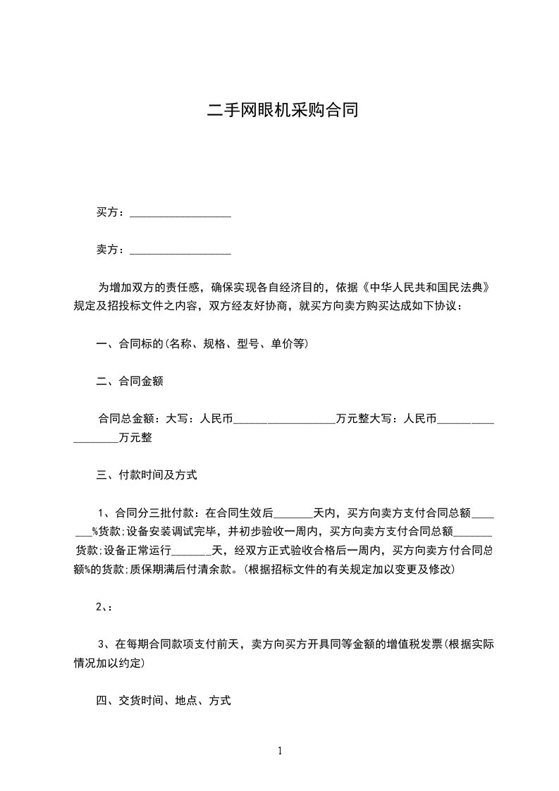 1、交货时间:合同生效后_______日内交货