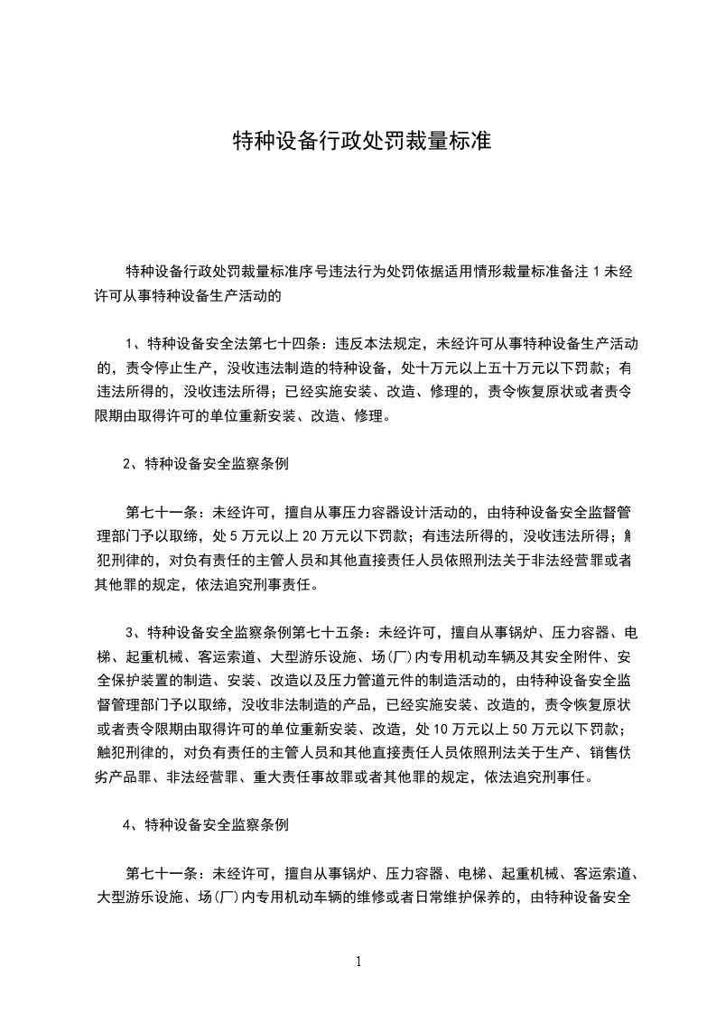 3、设备数量较多的。处十万元以上二十万元以下罚款造成严重后果的处二十万元以上三十万元以下罚款4特种设备出厂时,未按照安全技术规范的要求随附相关技术资料和文件的,经责令限期改正,逾期未改正的