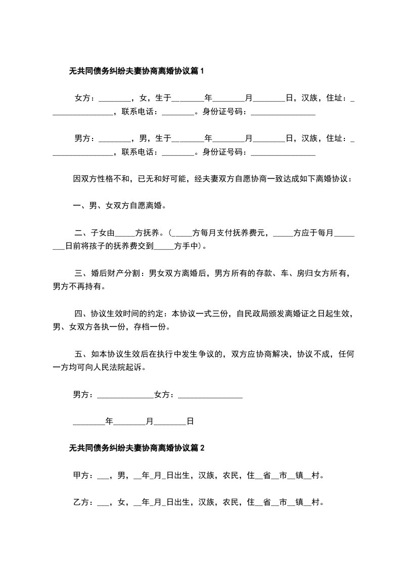 无共同债务纠纷夫妻协商离婚协议篇8