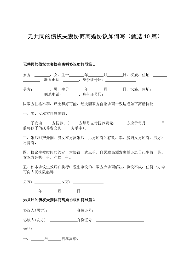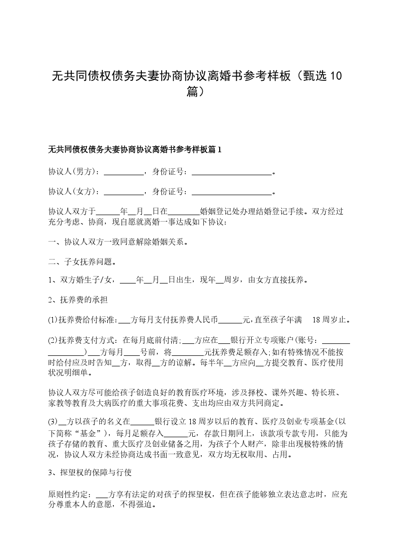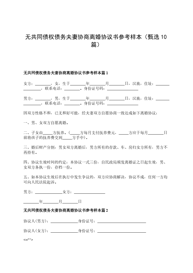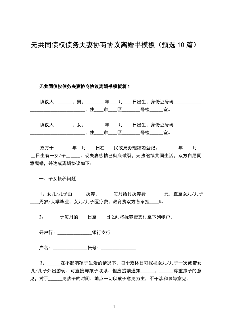 1、甲乙双方确认在婚姻关系存续期间无发生的共同债务。