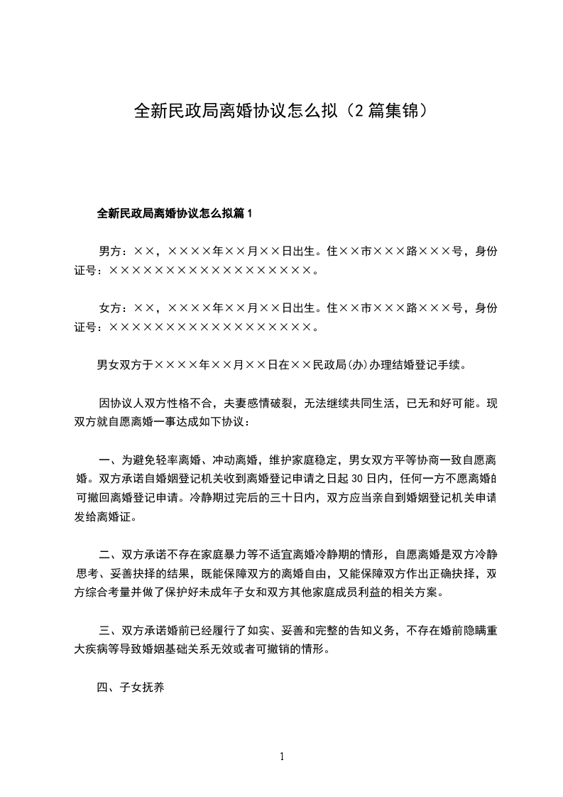 有子女民政局协议离婚范本怎么拟篇2