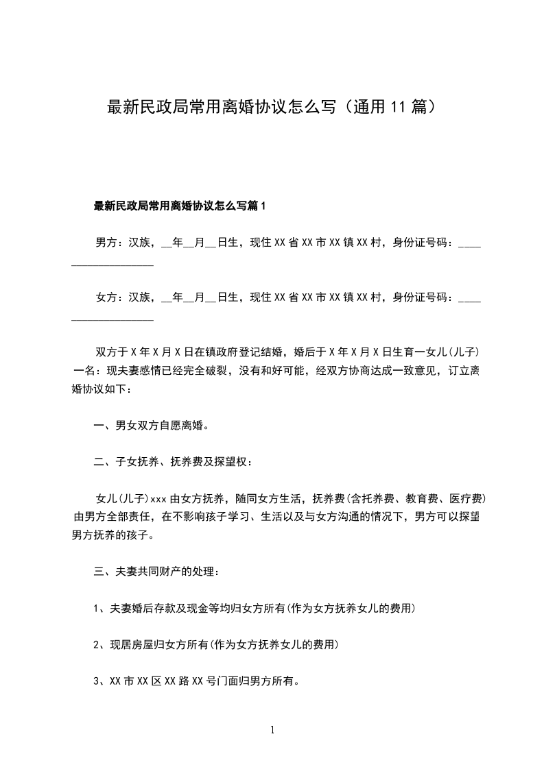 八、本协议一式三份,男、女双方各执一份,婚姻登记机关存档一份,自婚姻登记机颁发《离婚证》之日起生效。九、如本协议生效后在执行中发生争议的,双方应协商解决,协商不成,任何一方均可向相关人民法院起诉。