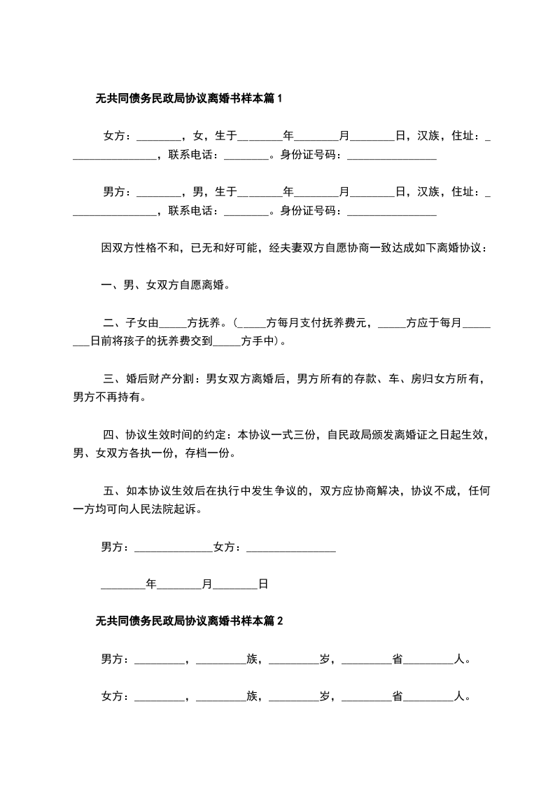 十、本协议一式_____份,双方各执_____份,民政局存档_____份。