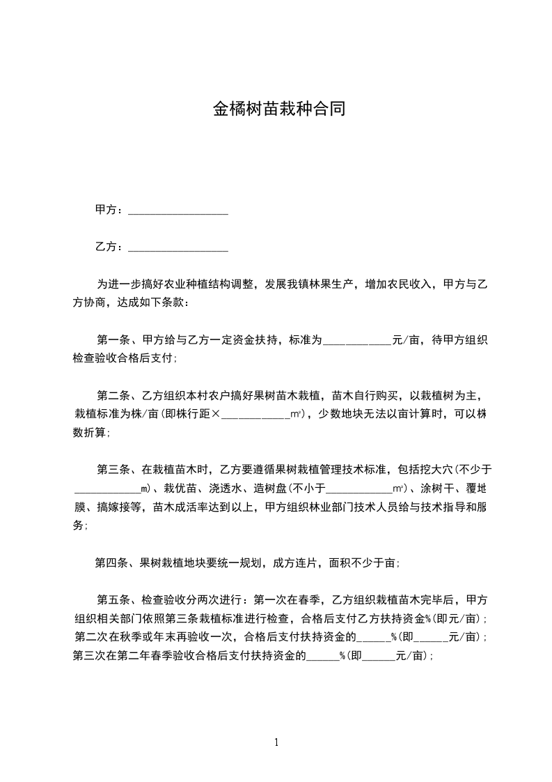 第一条、甲方给与乙方一定资金扶持,标准为____________元/亩,待甲方组织检查验收合格后支付;