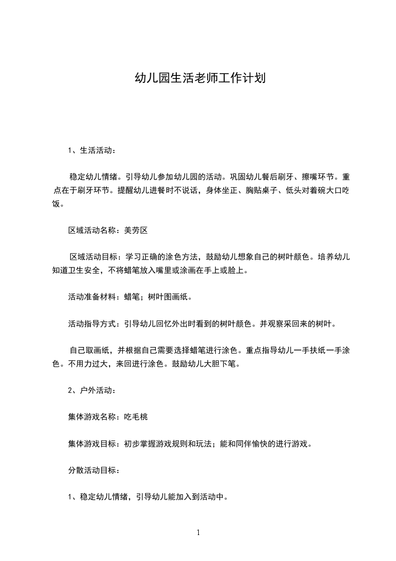 区域活动目标:学习正确的涂色方法,鼓励幼儿想象自己的树叶颜色。培养幼儿知道卫生安全,不将蜡笔放入嘴里或涂画在手上或脸上。
