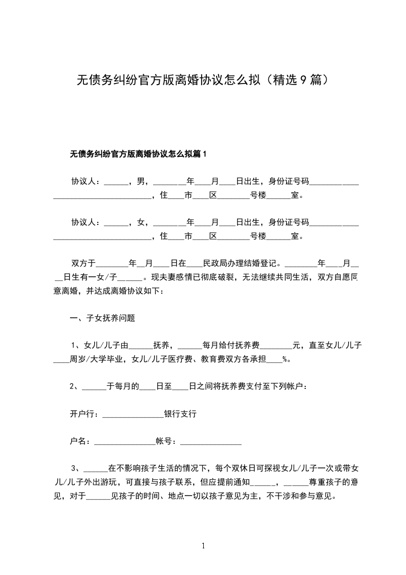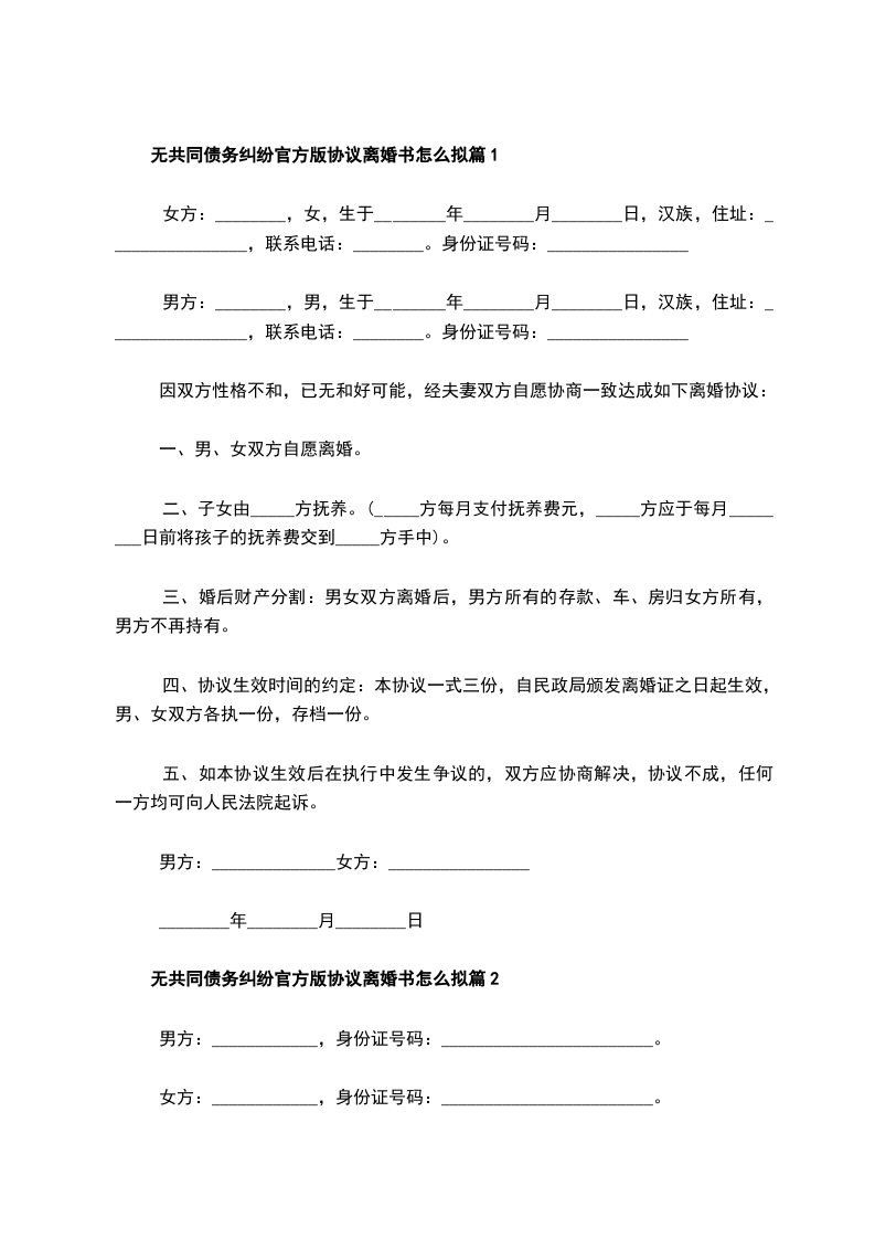 无债务纠纷官方版离婚协议怎么拟篇9