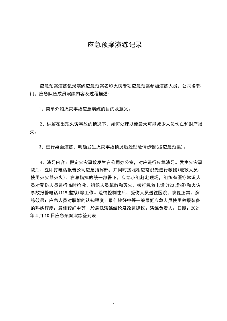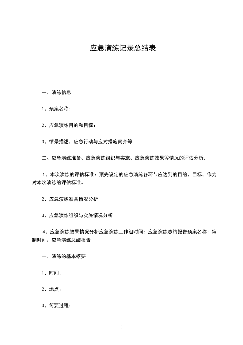 1、本次演练的评估标准:预先设定的应急演练各环节应达到的目的、目标,作为对本次演练的评估标准。