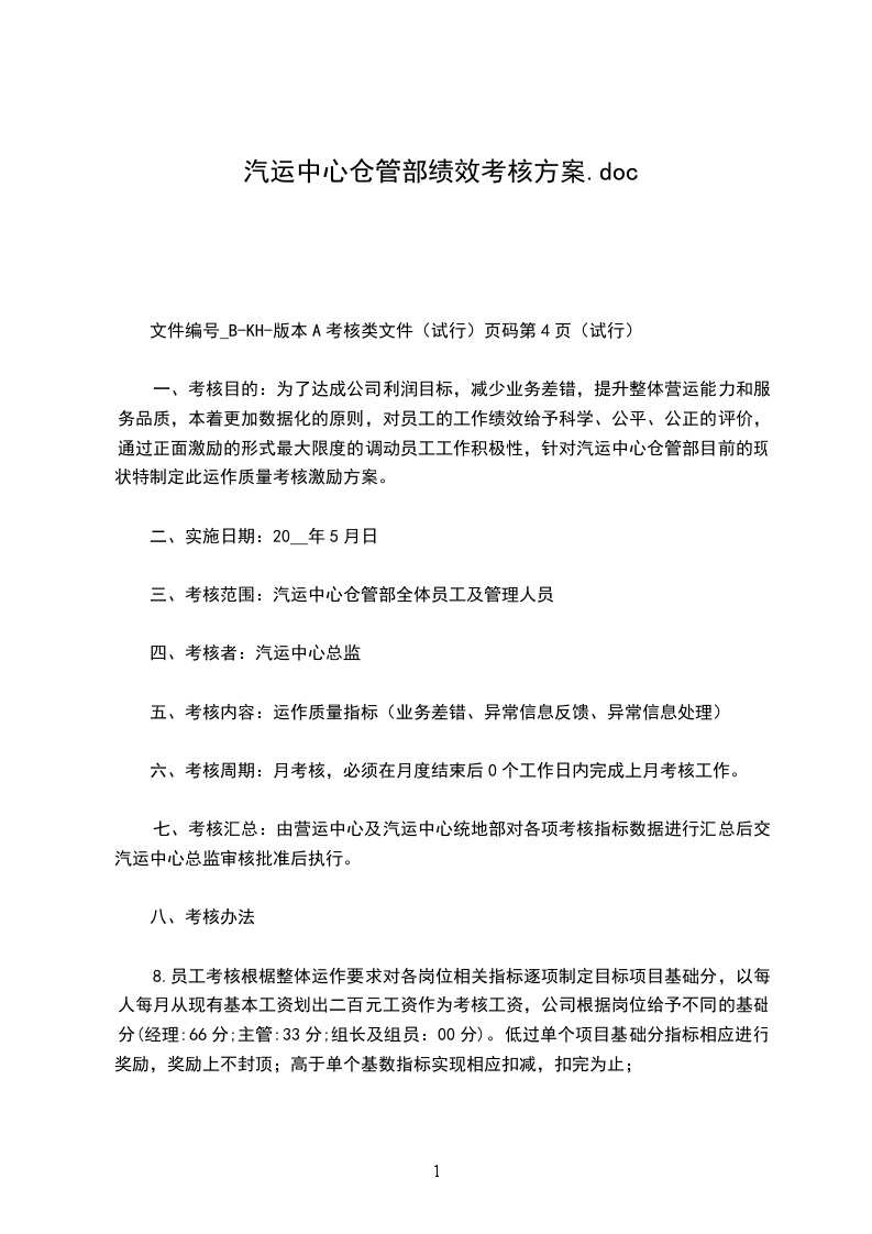 1.考核细则与奖励方式