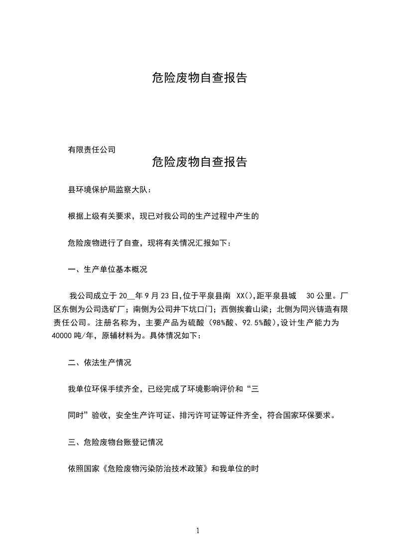 为落实《天津市人民办公厅关于印发天津市保护大检查方案的通知》要求,______扎实认真地组织开展了自查工作,现将自查有关报告如下