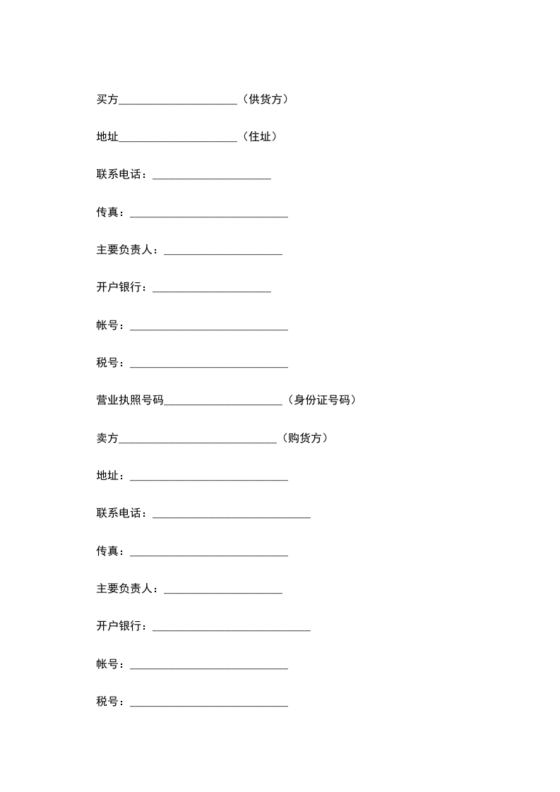 2、乙方逾期交货的,逾期5天内每逾期一天按逾期部分货款的________%计算违约金,在余款中直接扣除;超过5天的,乙方应双倍返还定金,并向甲方赔偿合同总额________%的违约金;甲方从应付乙方的货款中直接扣除违约金。