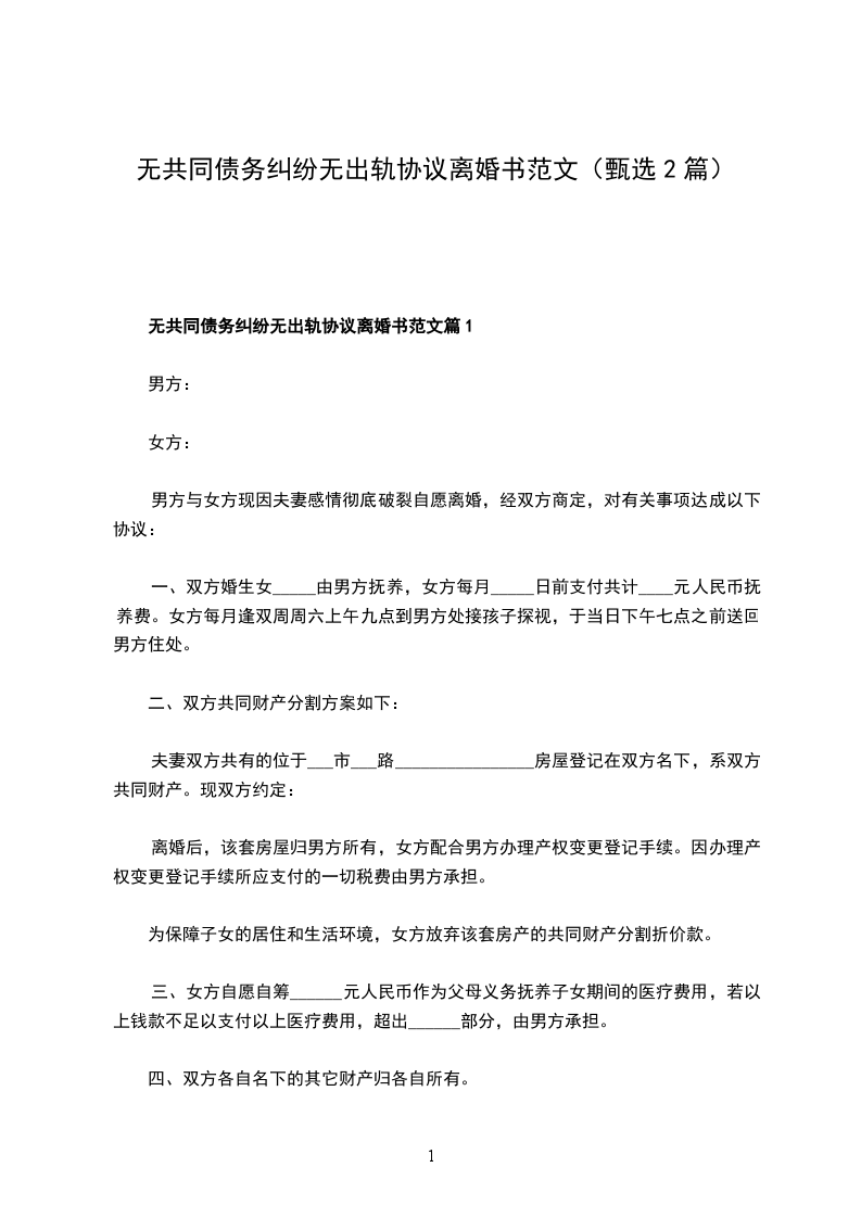 二、婚生二个孩子:长女:___________________________________, 二女:_________________________________________________,归_________抚养。