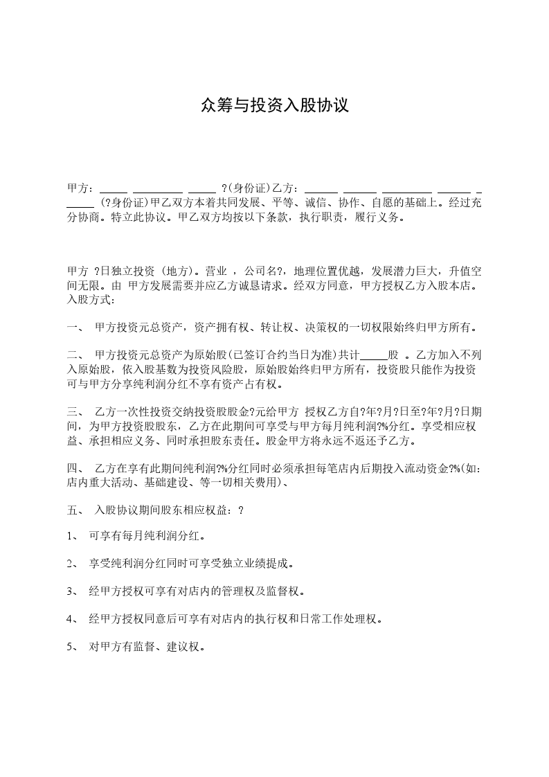 众筹股权投资协议20__最新的范本