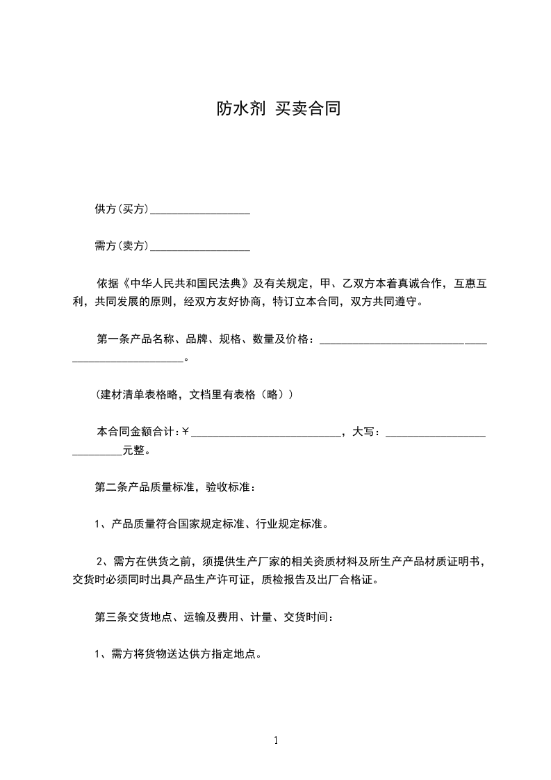 第一条产品名称、品牌、规格、数量及价格:__________________________________________________。