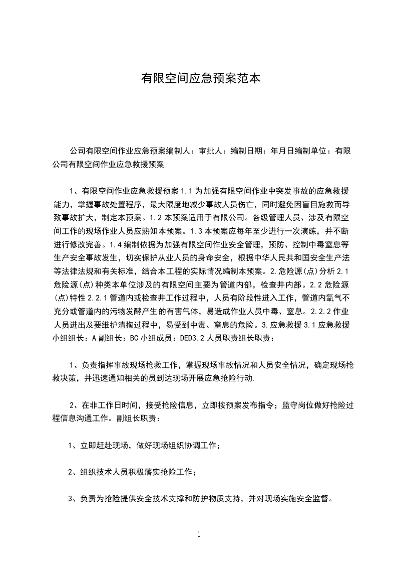 公司有限空间作业应急预案编制人:审批人:编制日期:年月日编制单位:有限公司有限空间作业应急救援预案