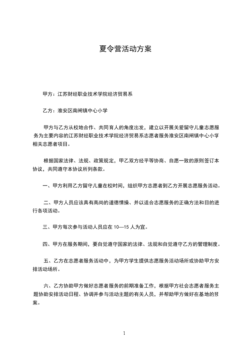 一、甲方利用乙方留守儿童在校时间,组织甲方志愿者到乙方开展志愿服务活动。