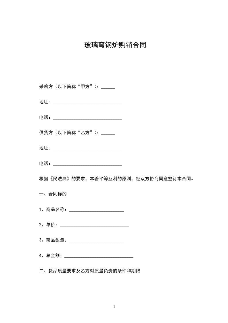 依据《中华人民共和国民法典》及相关法律法规,本着互惠互利、合作共赢的原则,经甲乙双方友好协商,现就供方购买需方__________________事宜达成如协议: