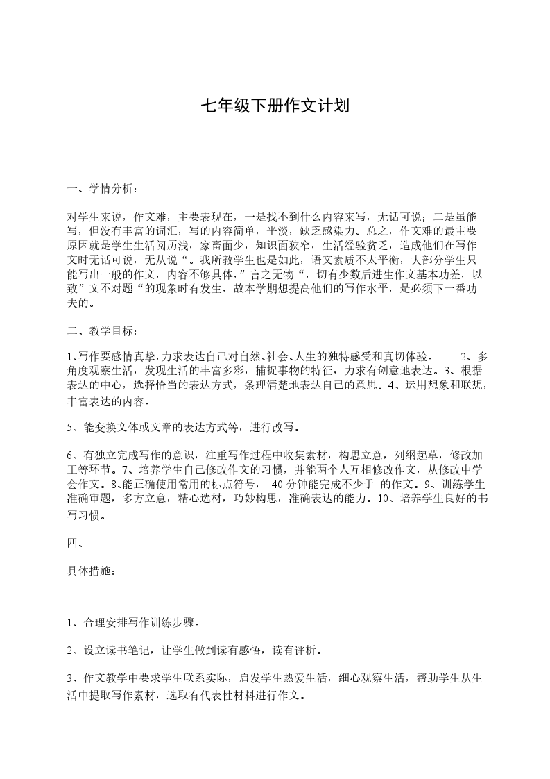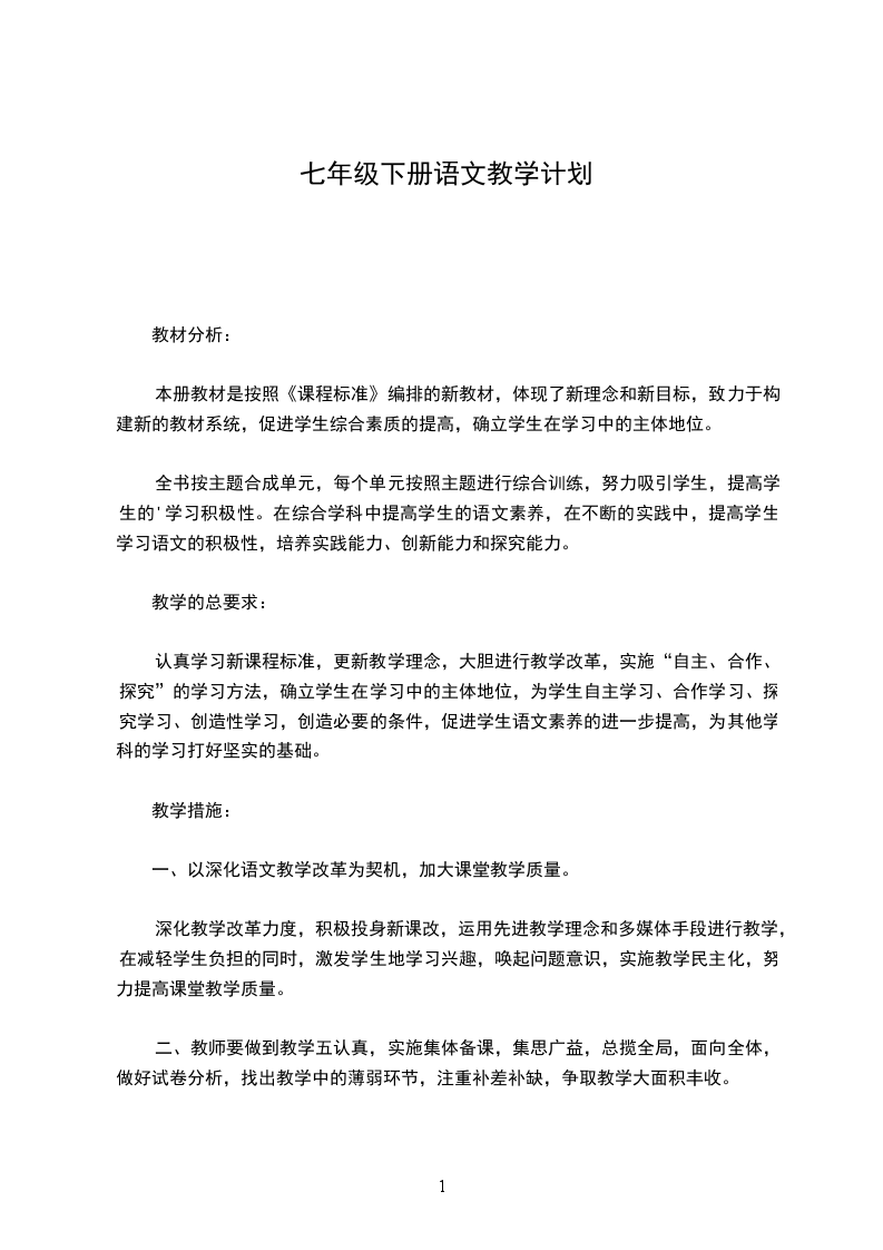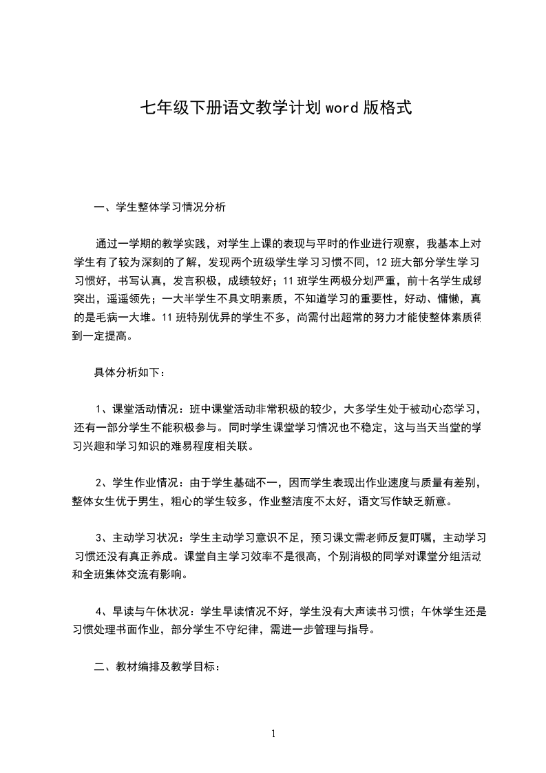 七年级下册语文教学计划的写法与格式是什么请参考以下这篇范文。