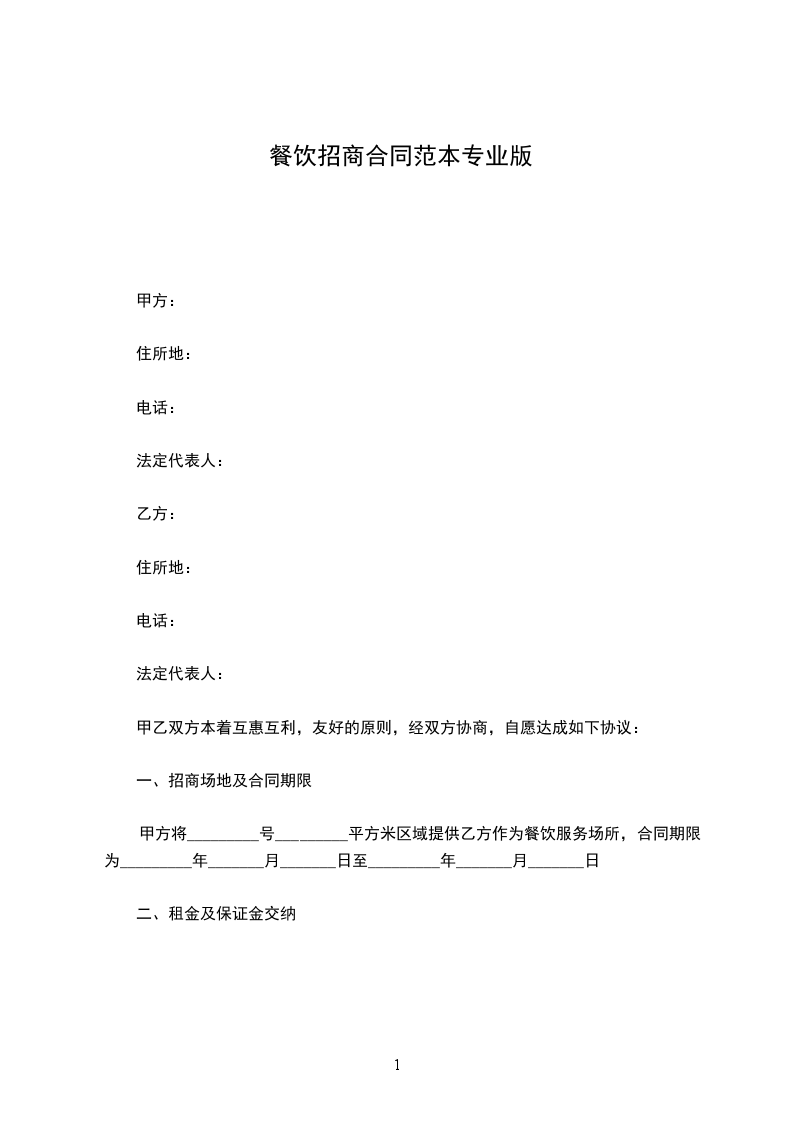 甲方将_________号_________平方米区域提供乙方作为餐饮服务场所,合同期限为_________年_______月_______日至_________年_______月_______日