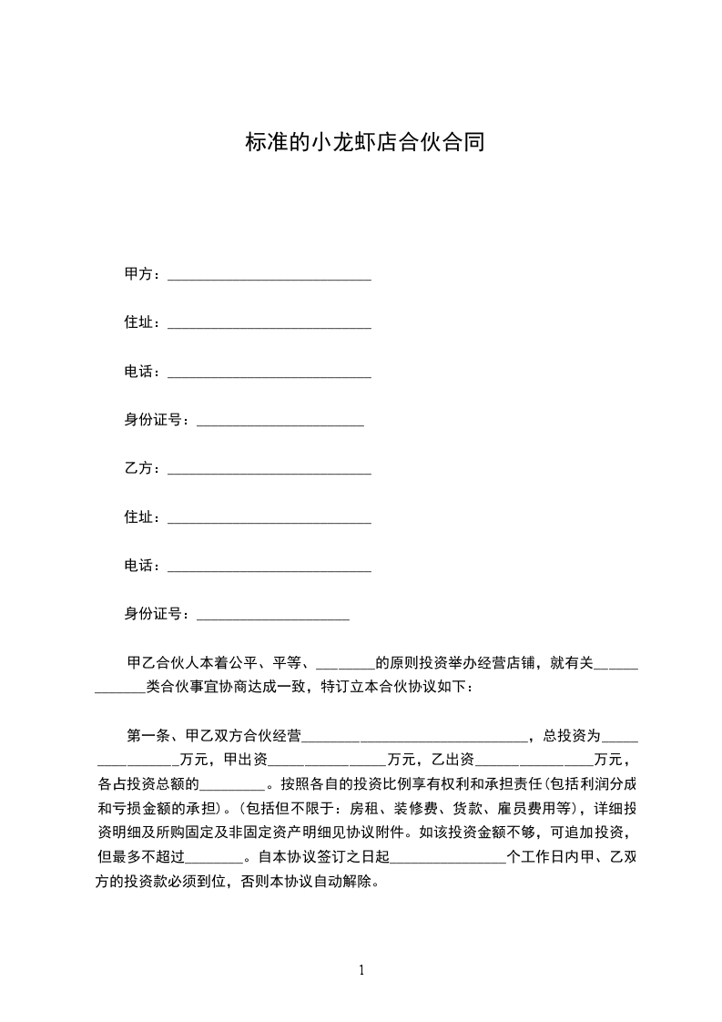 合伙人甲方签字:________________合伙人乙方签字:________________
