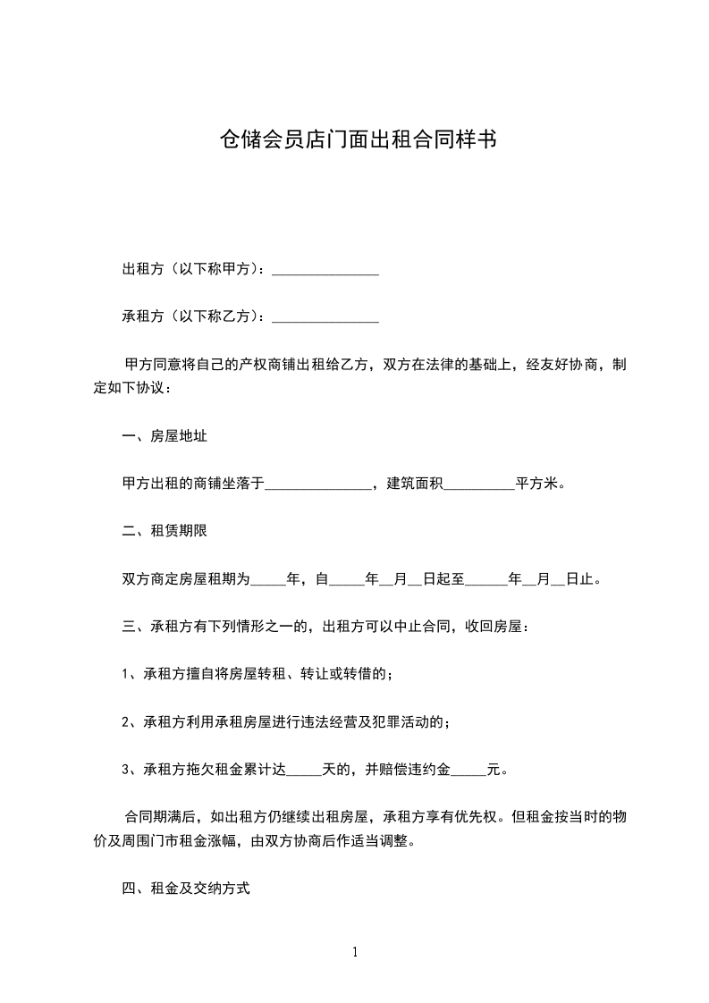 一、甲方将位于_______________________号门面租赁给乙方。甲方对所出租的房屋具有合法产权。